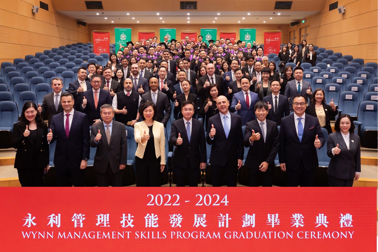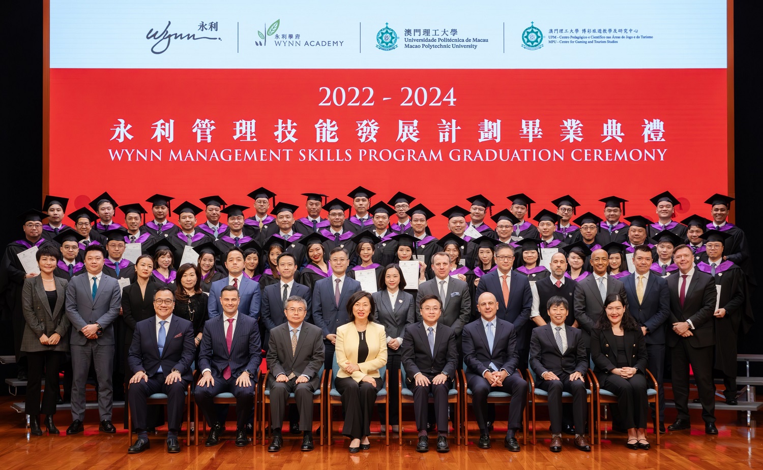 A fim de apoiar a construção de Macau como um Centro Mundial de Turismo e Lazer, a Universidade Politécnica de Macau (UPM) e a Wynn Macau, Limited co-organizaram o Programa de Desenvolvimento das Competências de Gestão em Wynn. O conteúdo do curso abrange o desenvolvimento das indústrias nacionais e regionais, a tendência do desenvolvimento do sector financeiro digital, a situação da aplicação da tecnologia de ponta no cenário do turismo e entretenimento, e o modelo de gestão dos resorts integrados através da cooperação multidisciplinar, entre outros. A Cerimónia de Graduação do Programa de Desenvolvimento das Competências de Gestão em Wynn teve lugar no Auditório da UPM, tendo o evento decorrido num ambiente grandioso e animado.