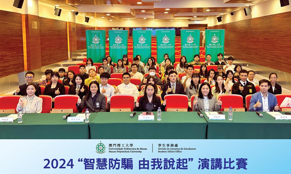 Para colaborar activamente com o “Programa de vacina antiburla no campus” promovido pelo Governo da RAEM e aumentar a sensibilização de prevenção de burlas e antifraude dos estudantes universitários, foi realizado com sucesso o Concurso de Eloquência sob o tema “A Prevenção Inteligente de Burlas Começa por Mim”, organizado pela Divisão de Assuntos de Estudantes da Universidade Politécnica de Macau (UPM) e com o apoio da Divisão de Ligação entre Polícia e Comunidade e Relações Públicas da Polícia Judiciária (PJ) da Região Administrativa Especial de Macau. Os estudantes participantes apresentaram visões perspicazes e palavras fortes e exprimiram a sua voz contra a fraude para se posicionarem contra a fraude.