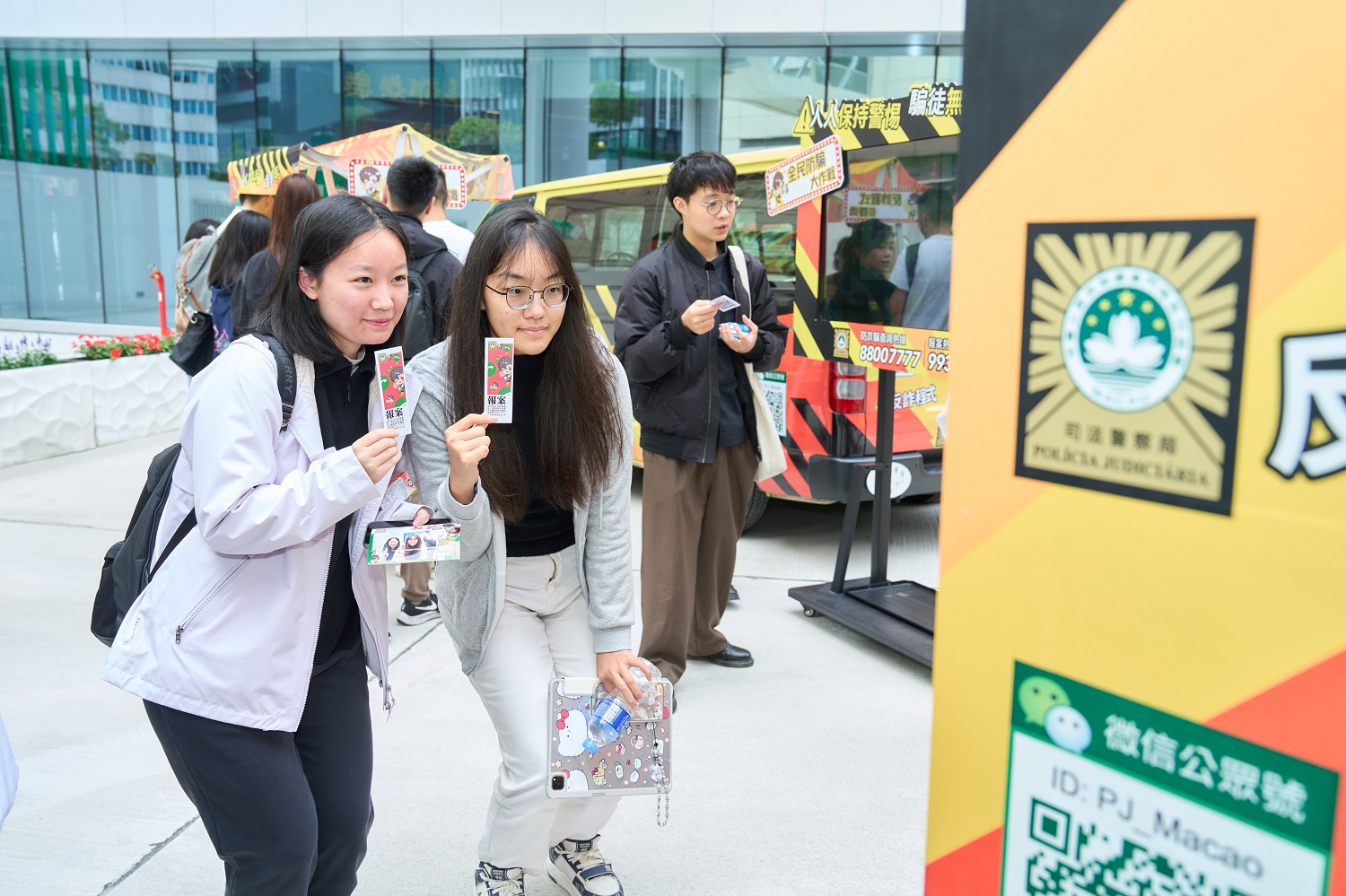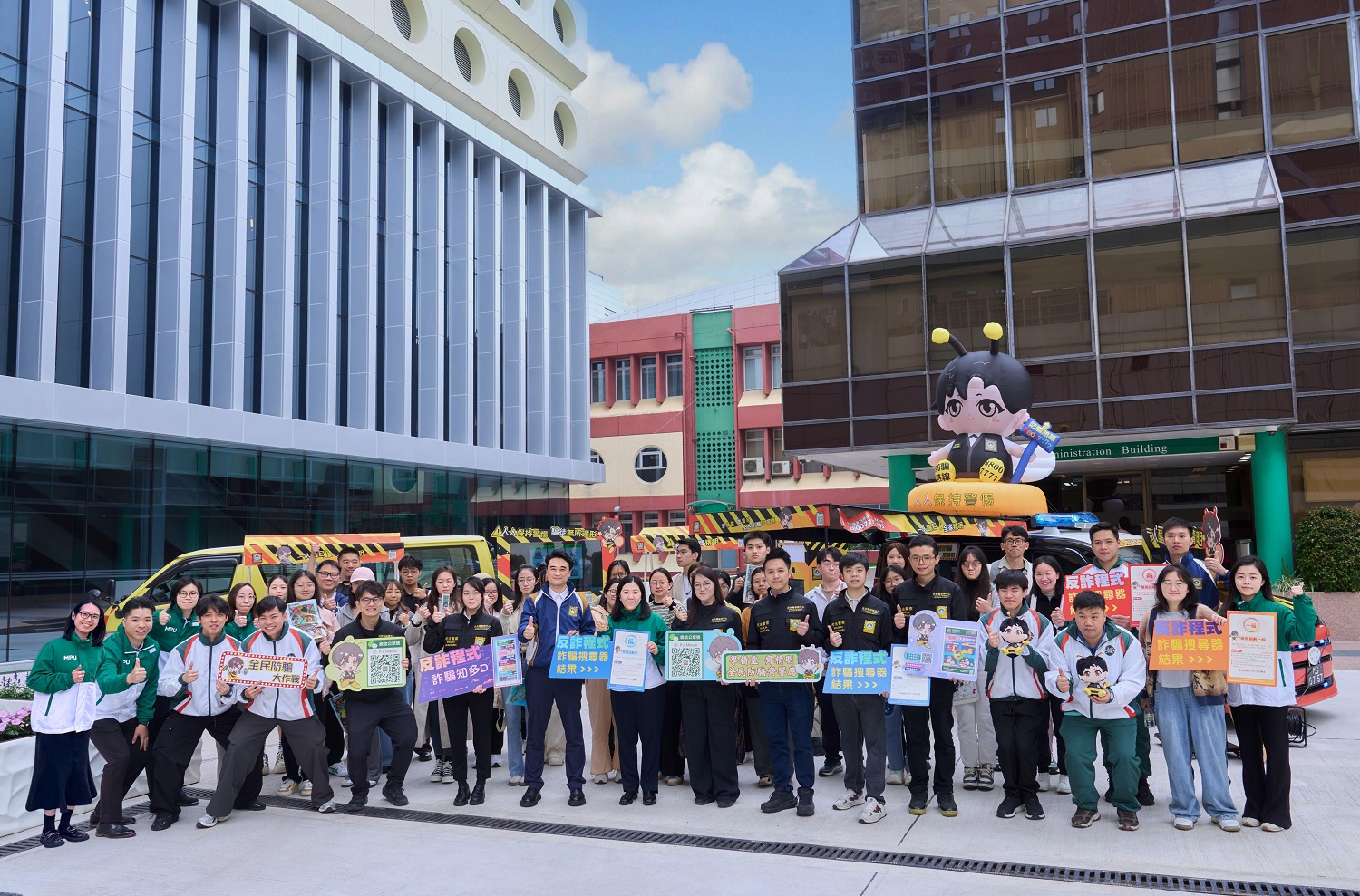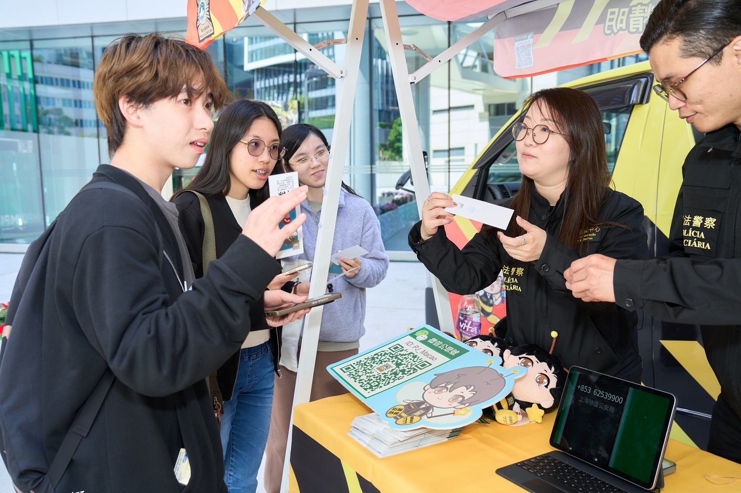 A fim de responder activamente ao Governo da Região Administrativa Especial de Macau (RAEM) na concretização do seu “Programa de vacina antiburla no campus”, sensibilizando o pessoal docente e administrativo e os estudantes universitários na área anti-fraude, a Divisão de Assuntos de Estudantes da Universidade Politécnica de Macau (DAE-UPM) convidou a entrada do “Veículo de promoção anti-fraude” da Polícia Judiciária (PJ) da RAEM no campus universitário, visando, mediante a organização de uma série de actividades interactivas e interessantes, elevar a capacidade de identificação e prevenção de burla na vida quotidiana.