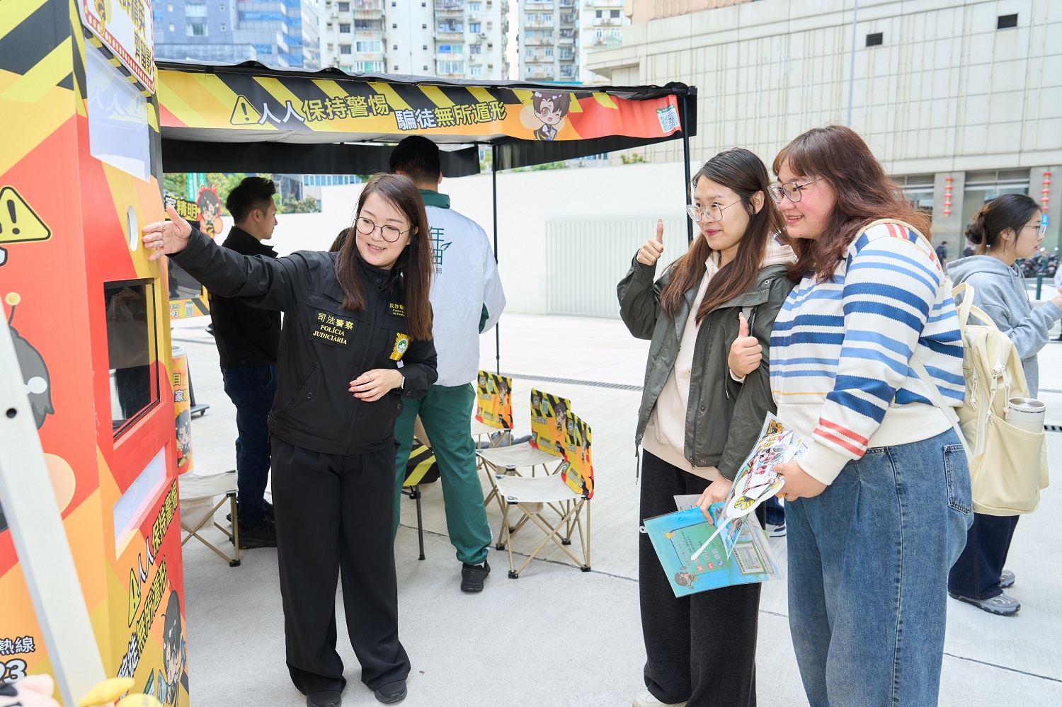Com o apoio da PJ, foram instaladas várias tendas de propaganda do “Veículo de promoção anti-fraude” no campus da UPM, incluindo as de “Conheça o programa anti-fraude”, “Estação anti-burla inteligente”, “Campanha anti-burla para todos”, e “Posto para a tiragem de fotos anti-burlas”, com exposições e actividades interactivas nas tendas, proporcionando uma ampla sensibilização contra a fraude. A actividade atraiu a participação de muitos professores e alunos, criando um ambiente animado. O embaixador anti-fraude dos estudantes da UPM, que participou na actividade, afirmou que esta actividade é nova, interessante e atraente, o que contribui para reforçar a sua consciência de prevenção de burla, elevar a capacidade de identificação do modus operandi de burla, salvaguardando em conjunto a segurança universitária.