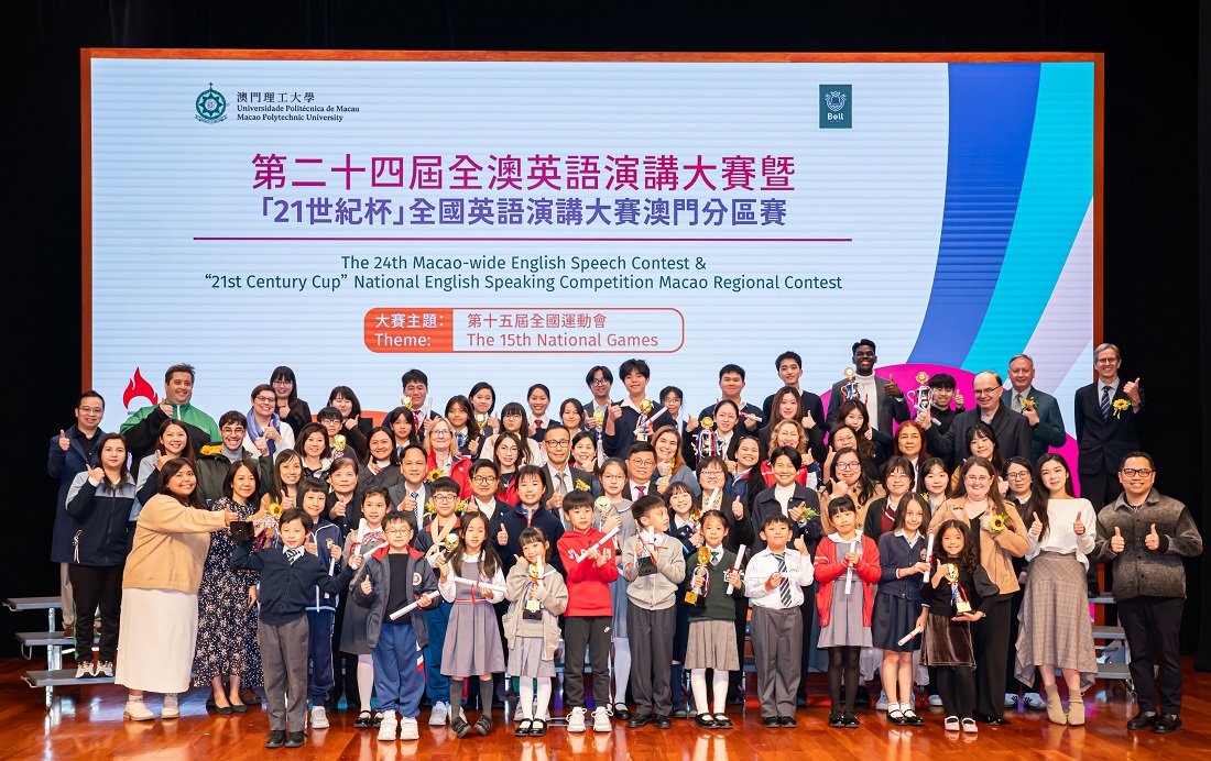 Organizada pela Universidade Politécnica de Macau (UPM) e realizada pelo Centro de Inglês UPM-Bell, realizou-se com sucesso a 24.ª Edição do Concurso de Discurso em Inglês de Macau e Concurso Nacional de Discurso em Inglês “Taça Século XXI” – Concurso Regional de Macau, tendo como tema “15.ª Edição dos Jogos Nacionais”. O Concurso tem como objectivo proporcionar aos estudantes locais uma plataforma para demonstrarem as suas competências em inglês, promover o desenvolvimento do ensino de inglês em Macau e formar uma nova geração de talentos com visão internacional e capacidade de comunicação multilingue. A cerimónia de entrega de prémios do Concurso contou com a presença de mais de 300 pessoas, incluindo directores, representantes e professores de várias escolas de Macau, alunos e seus pais, que testemunharam, em conjunto, o excelente desempenho e os resultados frutíferos dos participantes nos discursos em inglês, num ambiente animado.
