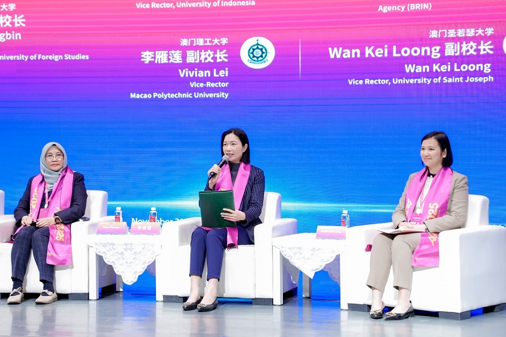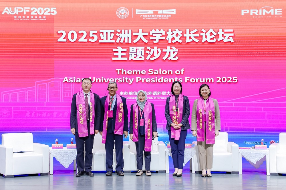 Com o intuito de promover o desenvolvimento sinérgico do ensino superior e reforçar a cooperação inovadora entre as universidades asiáticas, realizou-se o “Fórum de Reitores das Universidades Asiáticas de 2025” na Universidade de Estudos Estrangeiros de Guangdong. O Fórum, com o tema “Novas Tecnologias e Colaboração Intersectorial: Abrir Novos Caminhos para um Crescimento Resiliente e Inclusivo no Ensino Superior Asiático”, reuniu mais de 200 representantes de quase 90 universidades e instituições de 31 países e regiões, bem como representantes de consulados gerais de 15 países em Guangzhou. A Vice-Reitora da Universidade Politécnica de Macau (UPM), Vivian Lei, foi convidada a participar no evento e apresentou o envolvimento da UPM na construção da Cidade (Universitária) de Educação Internacional de Macau e Hengqin e do novo campus, e trocou ideias com representantes de instituições asiáticas de ensino superior sobre o desenvolvimento inovador. Além disso, a delegação da UPM participou nas actividades comemorativas do 60.º aniversário da Universidade de Estudos Estrangeiros de Guangdong e trocou impressões sobre os projectos de cooperação com o Secretário do Comité do Partido Comunista, Shi Youqi, e o Reitor, Yan Xiangbin.