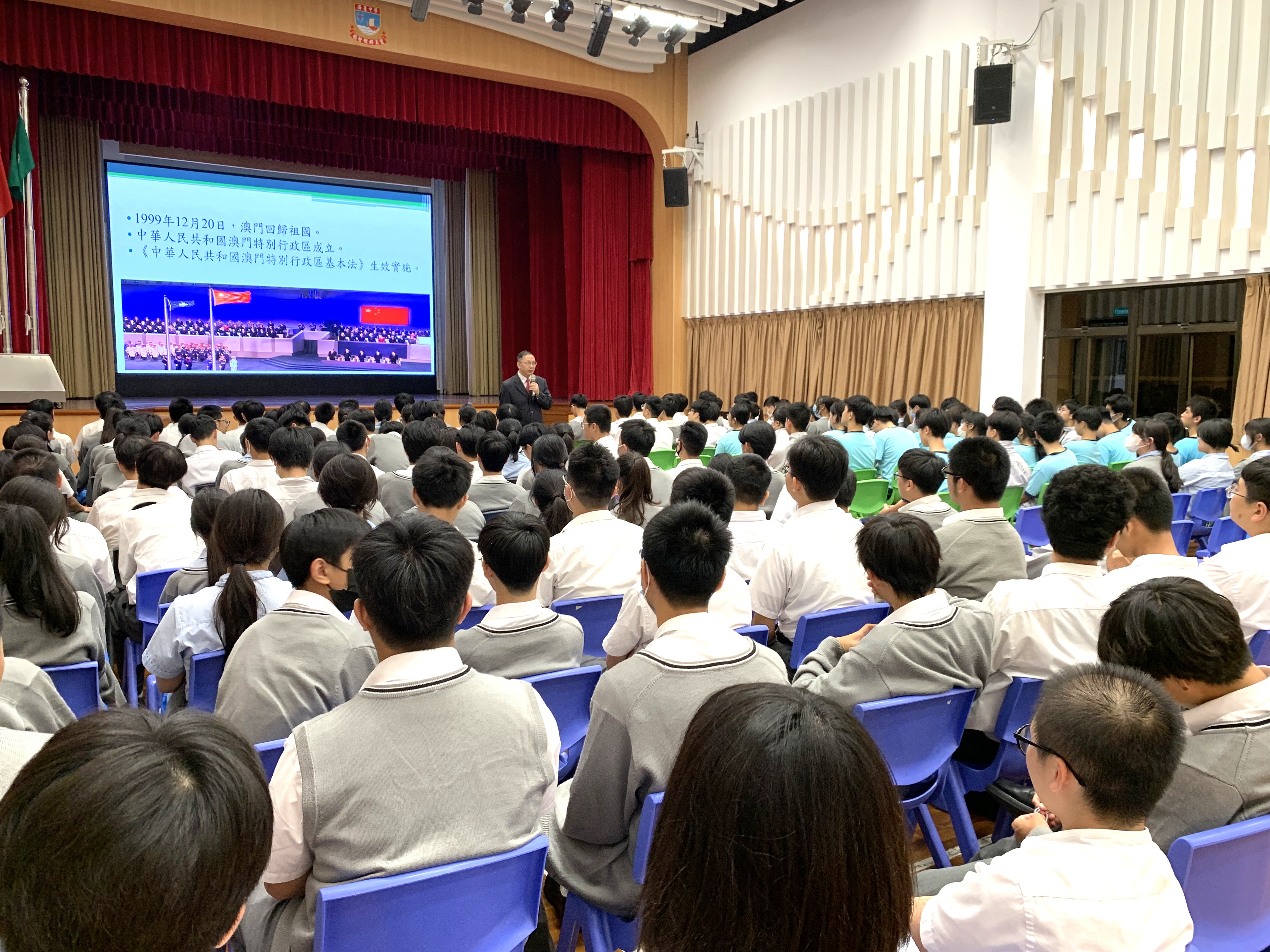 The lecture activities were conducted in two phases, with the first phase from January to July. With the themes of “Relationship between the Central Authorities and the Macao Special Administrative Region” and “National Security for Everybody”, the lectures outlined the legal status of the Macao SAR, the connotation of the holistic view of national security, and the basic requirements for the Macao SAR to implement the holistic view of national security and system construction to safeguard national security. The lectures let students further understand that safeguarding national sovereignty, security and development interests is necessary for the stability and long-term development of “one country, two systems”. Students should recognize that national security is closely related to the stable development of Macao and the well-being of residents, and they must enhance their national security awareness.