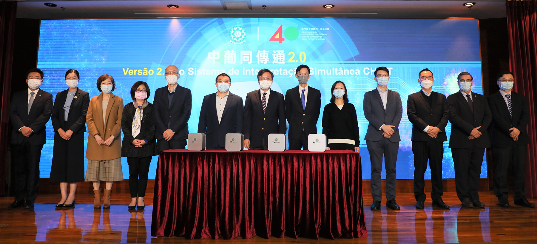 Em linha com o desenvolvimento da iniciativa nacional “Uma Faixa, Uma Rota”, com o papel de Macau como plataforma de serviços entre a China e os Países de Língua Portuguesa, bem como com a construção da Grande Baía Guangdong-Hong Kong-Macau e da Zona de Cooperação Aprofundada entre Guangdong e Macau em Hengqin, o “Centro de Investigação de Engenharia em Tecnologia Aplicada à Tradução Automática e Inteligência Artificial, Ministério da Educação" do Instituto Politécnico de Macau (IPM) lançou oficialmente, no dia 9 de Novembro, no IPM, a “Versão 2.0 do Sistema de Interpretação Simultânea CH-PT”, desenvolvida pelo Centro de Investigação. Trata-se de um sistema avançado de reconhecimento de voz e interpretação simultânea chinês-português, desenvolvido tendo em conta a construção do Centro Internacional de Inovação Científica e Tecnológica da Grande Baía. O novo produto não só melhorou globalmente a precisão do reconhecimento de voz e da tradução automática, como também acrescenta mais funções práticas e a experiência de interacção humano-computador, articulando-se com as exigências de reforçar a investigação e o desenvolvimento científico e tecnológico, e de desenvolver as indústrias de megadados, inteligência artificial e Internet das coisas, propostas no âmbito da construção da Zona de Cooperação Aprofundada entre Guangdong e Macau em Hengqin. Os departamentos do governo e as organizações dos diferentes sectores são bem-vindos a utilizar o novo produto.