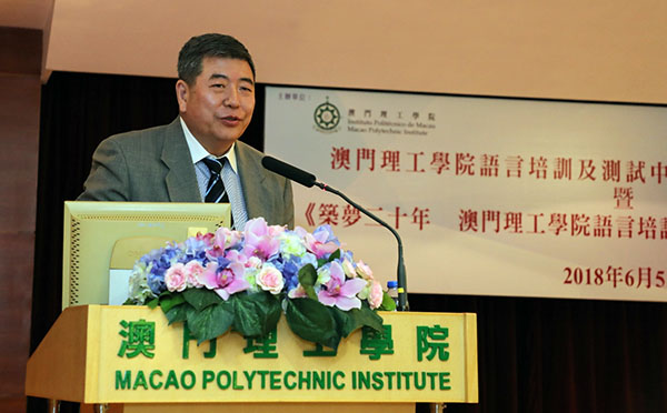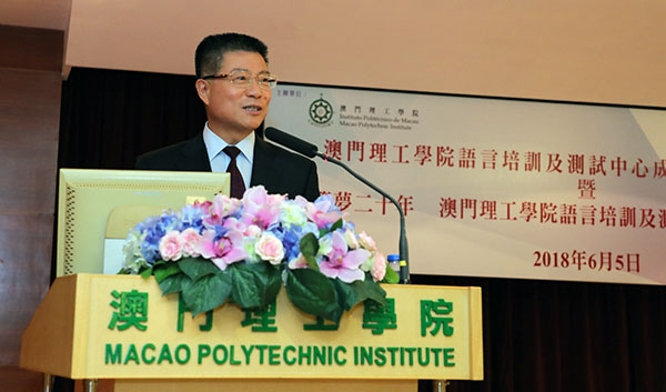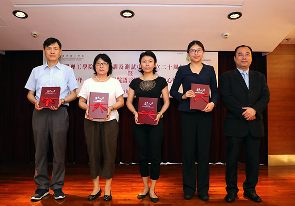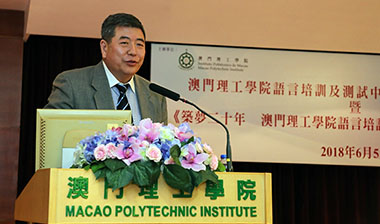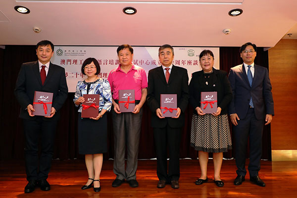 “澳門理工學院語言培訓及測試中心成立二十周年座談會暨《築夢二十年 澳門理工學院語言培訓及測試中心特刊》發行儀式”於6月5日早上10時30在理工學院匯智樓一樓2號演講廳舉行,由國家教育部語言文字應用研究所張世平所長、中央人民政府駐澳門特別行政區聯絡辦公室教育與青年工作部洪波處長、澳門理工學院李向玉院長、高等教育輔助辦公室曾冠雄副主任、教育暨青年局局長代表陳旭偉廳長等嘉賓主禮。國家教育部語言文字應用研究所張世平所長表示,澳門回歸祖國以來,與內地合作日趨頻密,學習和掌握國家通用語言日益成為澳門政府與市民共同的目標和努力方向。20年來,國家語委普通話與文字應用培訓測試中心為澳門培養了國家級普通話水準測試員23名,而澳門參加普通話水準測試的人數20年平穩增長,至2017年底,已達約3000人次。國家語委普通話與文字應用培訓測試中心將繼續秉承“服務澳門市民和社會”的理念,與澳門普通話測試中心一起,再創普通話新的輝煌。