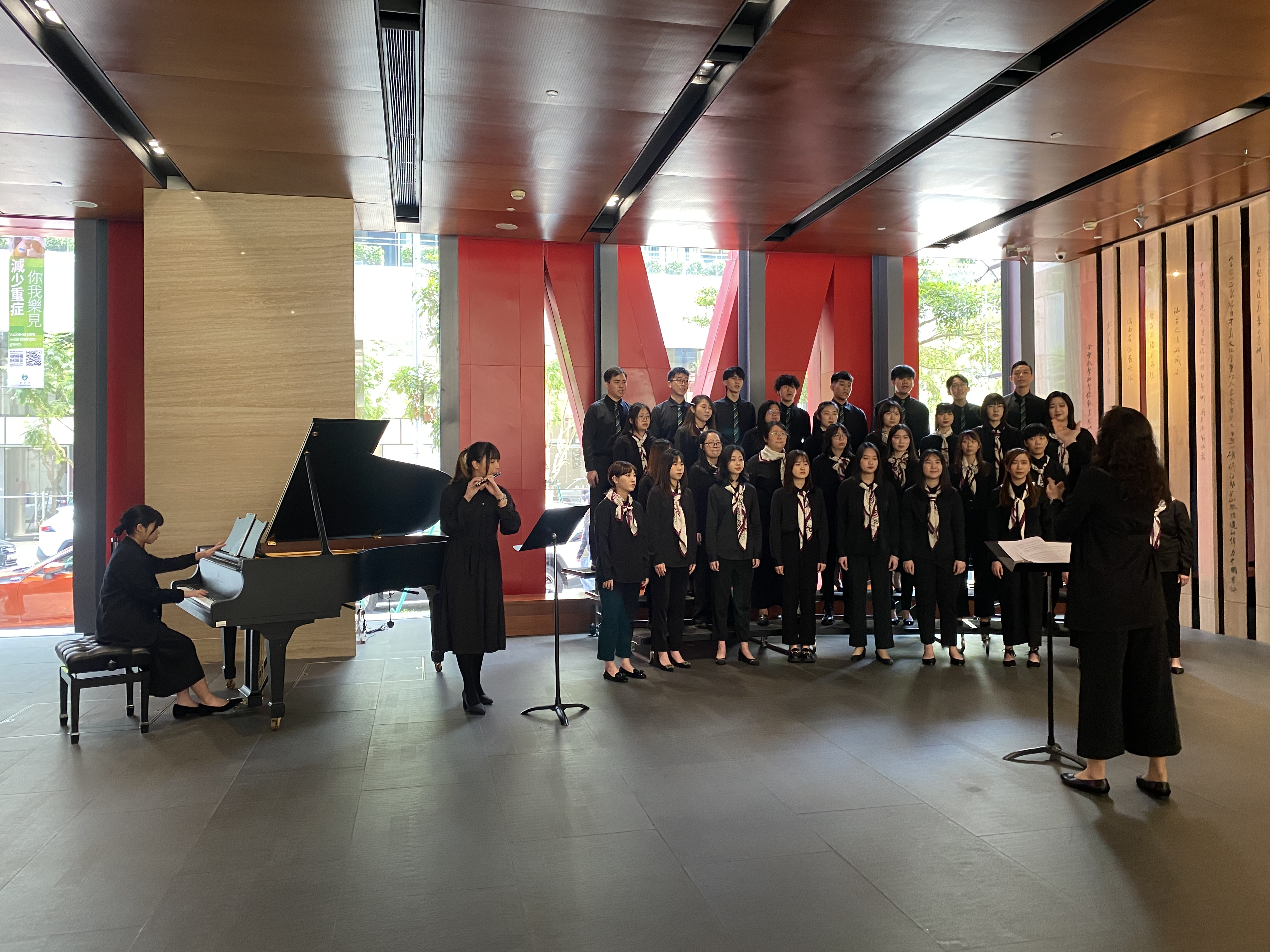 To promote the healthy growth of students, and to create a relaxing and joyful learning environment, the Student Affairs Office of Macao Polytechnic University (MPU) organised the Lunchtime Choral Salon in the lobby of the Meng Tak Building at the university. The event was held to bring youthful energy to the campus and to showcase the results of the teaching of singing to the audience. Everyone enjoyed the warm and lively atmosphere of the show.