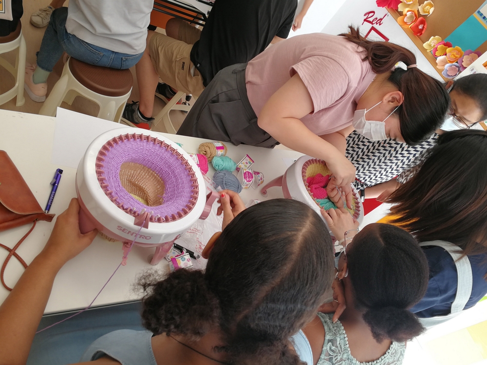 澳門理工學院學生認真學習製作圍巾