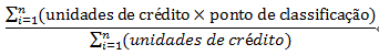 O desempenho global do aluno é representado por uma pontuação ponderada cumulativa, calculada conforme o seguinte: ("n" é o número das unidades curriculares em que o aluno esteja inscrito):
