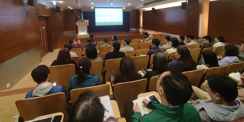 教與學中心代副主任宋月副教授向各學院的課程管理老師介紹大學最新頒佈的《學位課程定期評審指引》,指出如何通過課程持續監測與定期審查,構建更完整的課程質量保障機制,確保學位課程持續改進並符合國際評估標準。