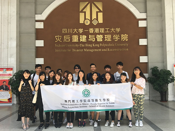 為加強與內地高校之間的學術交流,了解康復醫學在汶川地震後的進行情況,並讓學生掌握及加強醫學救援的專業技能,澳門理工學院高等衛生學校組織了護理學課程師生16人於6月26日至7月3日期間赴四川大學-香港理工大學災後重建與管理學院開展“蜀澳災區康復治療服務學習”交流計劃。 四川大學是國家教育部直屬全國重點大學,其與香港理工大學聯合創建的災後重建與管理學院更是全球第一所防災減災及重大災害危機管理的專門學院。是次交流計劃除理工外,參加的單位尚有四川大學、四川省八一康復中心及綿竹市康復中心。理工學生獲安排接受脊髓傷員研究理論及醫學救援技能的培訓,並前往四川省八一康復中心及綿竹縣人民醫院實踐損傷治療操作,體驗全球最尖端的臨床智能康復系統-卡倫系統,以及探訪512汶川大地震的脊髓傷員,為患者在復健問題上提供專業的護理建議。交流期間,理工師生也獲安排參觀四川大學博物館、成都都江堰及杜甫草堂等著名工程及古蹟,加深對國家歷史發展的認識。 理工高等衛生學校的帶隊老師表示這是一次別具意義的交流之旅,樂見同學能結合護理學的專業知識以幫助脊髓傷員。參與交流的同學感謝理工的組織及安排,此行讓他們獲益良多,既瞭解到現時康復醫學的發展,亦增進了康復治療服務的知識;在體會地震等自然災害所帶來破壞的同時,也驚嘆國家在扶持災後興建方面的速度及規模。而親身接觸地震倖存者讓同學們感受甚深,更啓發他們要努力學習,立志成為優秀的護理專才,為澳門社會作出貢獻。 |