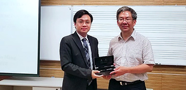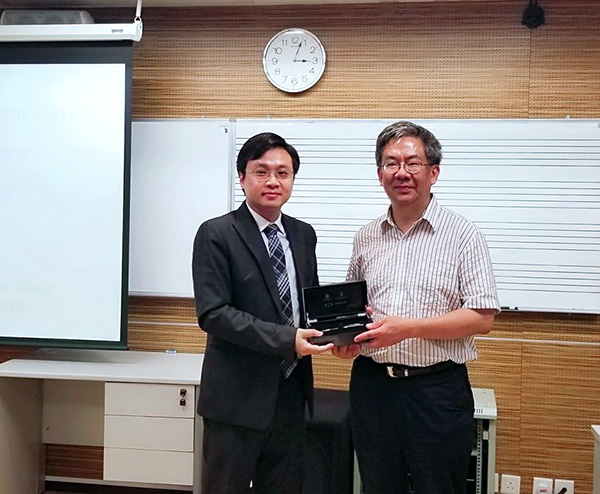 澳門理工學院副院長嚴肇基教授向梁曉鳴局長致送紀念品 |