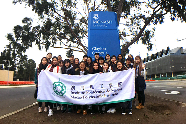 為鼓勵學生學習國際商業知識,提升綜合競爭力,拓闊國際視野,澳門理工學院學生事務處於剛剛過去的暑假期間舉辦“海外學習計劃”,組織優秀學生前往澳洲墨爾本著名的蒙納士大學展開為期三週的文化交流活動,學習內容包括:全球視野、跨文化能力、全球專業技能及企業文化參與等範疇,參與學生均表示海外學習能拓展他們的專業知識和視野,獲益良多。