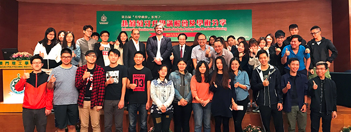 為加強學生的升學輔導服務及生涯規劃教育,澳門理工學院努力為學生拓展升學渠道,邀請不同國家的高等院校代表來分享升學資訊。2017/2018學年的第五屆「升學動車」系列活動日前啟動,系列一之活動率先由葡萄牙科英布拉大學佩德羅·托雷斯教授和約翰·科斯塔教授主講,給學生提供碩士課程資訊、了解生涯規劃的方向。主講者分享生動,學生踴躍發問,場面熱鬧。出席的學生表示澳門作為“中國與葡語國家商貿合作服務平台”,更應把握理工提供的優勢到葡萄牙進修及學習葡萄牙語。