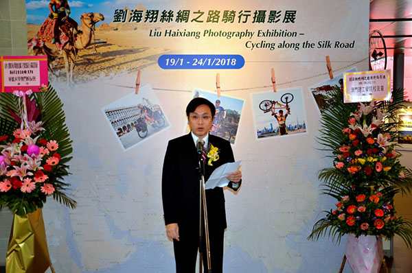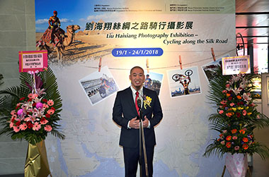 由澳門理工學院及振興中華教育科學基金會主辦,澳門理工學院校友會及學生會協辦的「劉海翔絲綢之路騎行攝影展」19日在澳門理工學院明德樓展覽廳揭幕,展出劉海翔 “萬里走單騎”的成果,總計收錄有43個主題,398張照片,展期至24日。