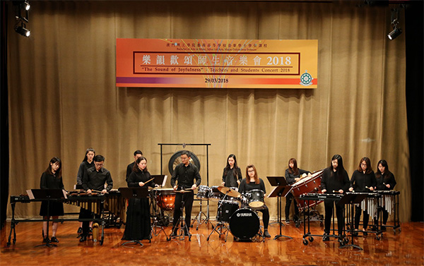 2018年3月29日晚,澳門理工學院藝術高等學校音樂課程2018年度 “樂韻歡頌師生音樂會” 在理工學院禮堂順利舉行。一年一度的師生音樂會是音樂課程的重要藝術實踐活動,為學生展現藝術表演才華提供舞台,並有和表演專業教師同台演出學習的機會。本年度的師生音樂會同時也是 “第三屆澳門理工學院藝術節” 的系列活動之一。