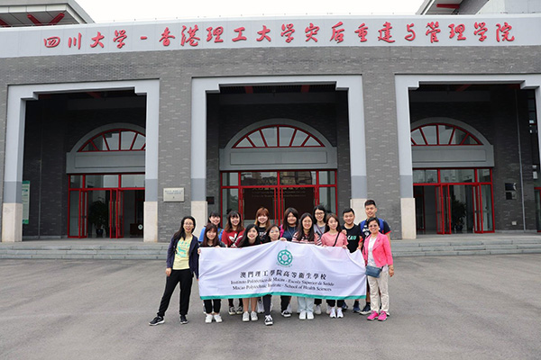 為加強與內地高校之間的學術交流,了解康復醫療服務在汶川地震後的實施狀況,並加強學生在醫學救援方面的專業知識與技能,澳門理工學院高等衛生學校護理學及言語語言治療課程師生一行早前赴四川大學―香港理工大學災後重建與管理學院開展“蜀澳災區康復服務學習”交流計劃,收穫良多,學生們立志將來成為醫護界的優秀專才,為澳門以致全世界有需要的傷患作出貢獻。