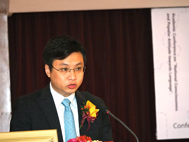 由澳門理工學院澳門語言文化研究中心舉辦的題為“國家意識與語言態度”學術研討會,十月二十四日早上九時三十分在澳門理工學院匯智樓演講廳舉行。國家教育部語言文字應用研究所所長張世平、澳門特區政府高等教育輔助辦公室主任蘇朝暉、北京語言大學副校長張寶鈞、澳門理工學院院長嚴肇基主持開幕儀式,來自內地、香港、日本、韓國和本澳的四十多名專家學者,圍繞主題展開了熱烈的學術研討。