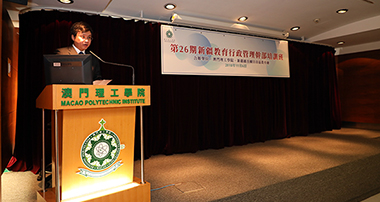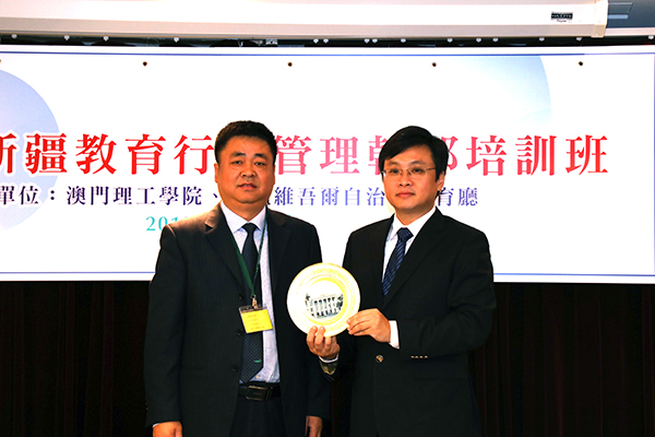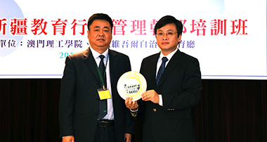 嚴肇基致詞時表示,在澳門特別行政區政府社會文化司和新疆維吾爾族自治區教育廳支持下,理工學院自○四年起開展與新疆多元合作,包括有新疆教育部門幹部培訓、高中畢業生來澳門就讀學位課程、英語師資培訓、合辦學術研討會、提升教與學質量的合作、高校科研學術合作及建立兩地教育合作可持續發展的平台等方面。目前共有來自新疆的教育幹部、大學及基礎教育教師、專家、學者及學生共二千五百多人參與了合作項目。其中新疆教育行政管理幹部培訓班已成功開辦二十五個培訓班,共計總學員五百零三人。今期理工迎來第二十六班的學員,授課內容除相關理論學習,還將安排講座、與專業團體交流座談、參訪及文化考察活動,增進學員以多角度對澳門教育、澳門文化、教育管理等方面的學習和理解。