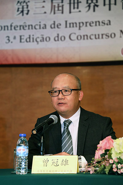 澳門理工學院葡語教學暨研究中心主任張云峰介紹比賽詳情 |