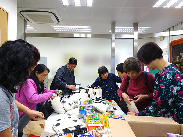 義工們探訪前準備活動禮物 |