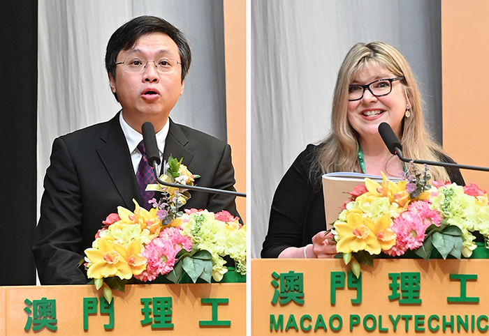 澳門理工學院院長嚴肇基(左)及國際音樂教育學會主席Susan O’Neill致詞