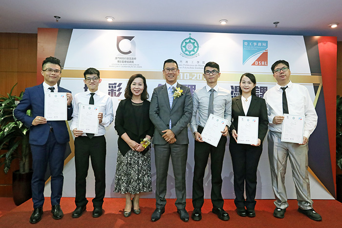 理工學院副院長李雁蓮 (右四) 向澳博畢業生頒發畢業證書