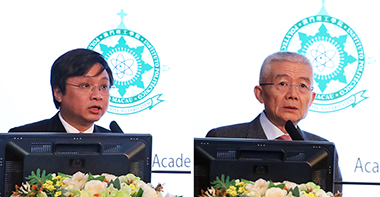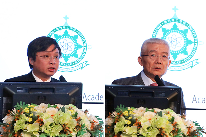 理工學院院長嚴肇基致歡迎辭及全國港澳研究會會長徐澤 (右)致辭並作主旨演講