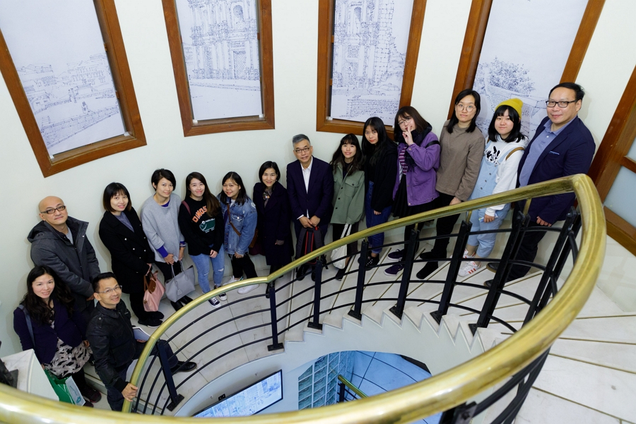 當日下午舉行文創工作坊,兩校師生分別走訪關前街文創區、文藝門、婆仔屋文創空間、瘋堂十號創意園,以及澳門時尚廊等多個文創社區推廣場所,聽取業界及營運者的具體介紹。其中,本地攝影家陳顯耀、澳門中區南區工商聯會會長李卓君、青年藝術家百強現身說法,讓參與者對澳門社區文創發展現況、未來發展方向,以及文化創意產業的推廣等課題,有了更為深刻的現場體驗。