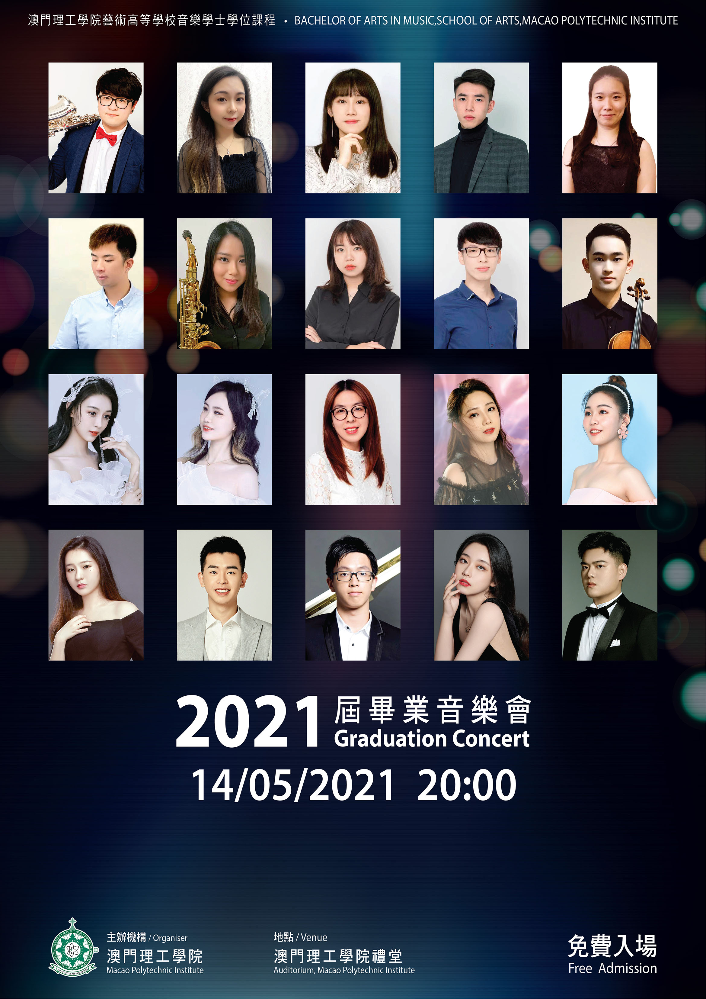 一年一度的澳門理工學院學生畢業音樂會,將於5月14日晚上八時正,在學院禮堂舉行,向社會展示音樂學士學位課程應屆畢業生四年來的學習成果,分享學生在音樂專業學習旅程的收穫和喜悅。