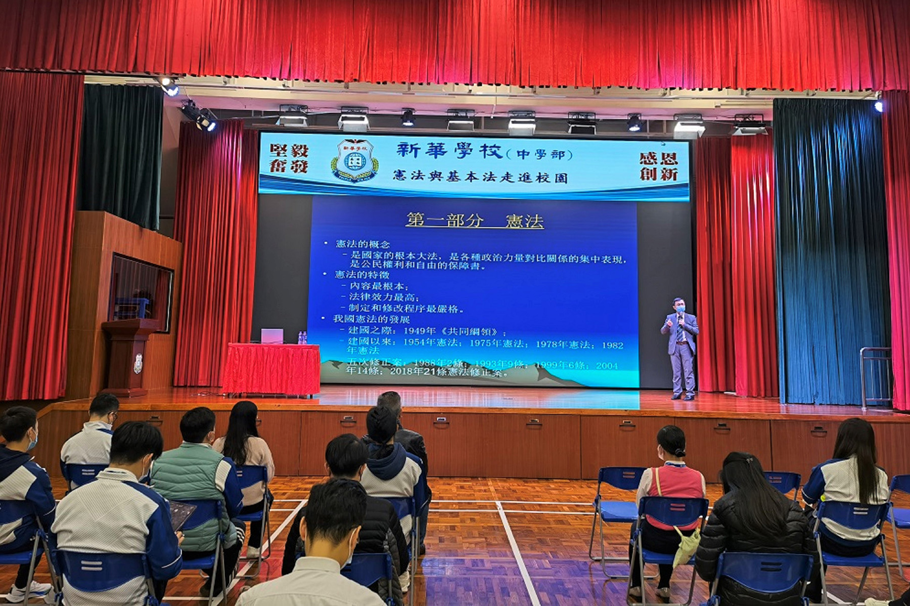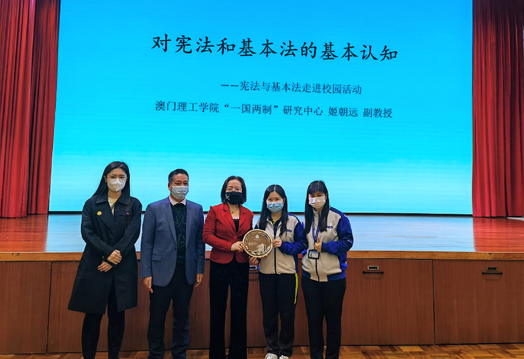 為持續推動、加強師生對憲法和基本法的深入理解和準確認識,澳門理工學院“一國兩制”研究中心開展“憲法與基本法走進校園”活動,2022年1月17、18、21日分別在新華學校(中學部)和利瑪竇中學舉行三場中學生講座,1月18、24日分別在新華學校(中學部)和菜農子弟學校舉行兩場教師講座。