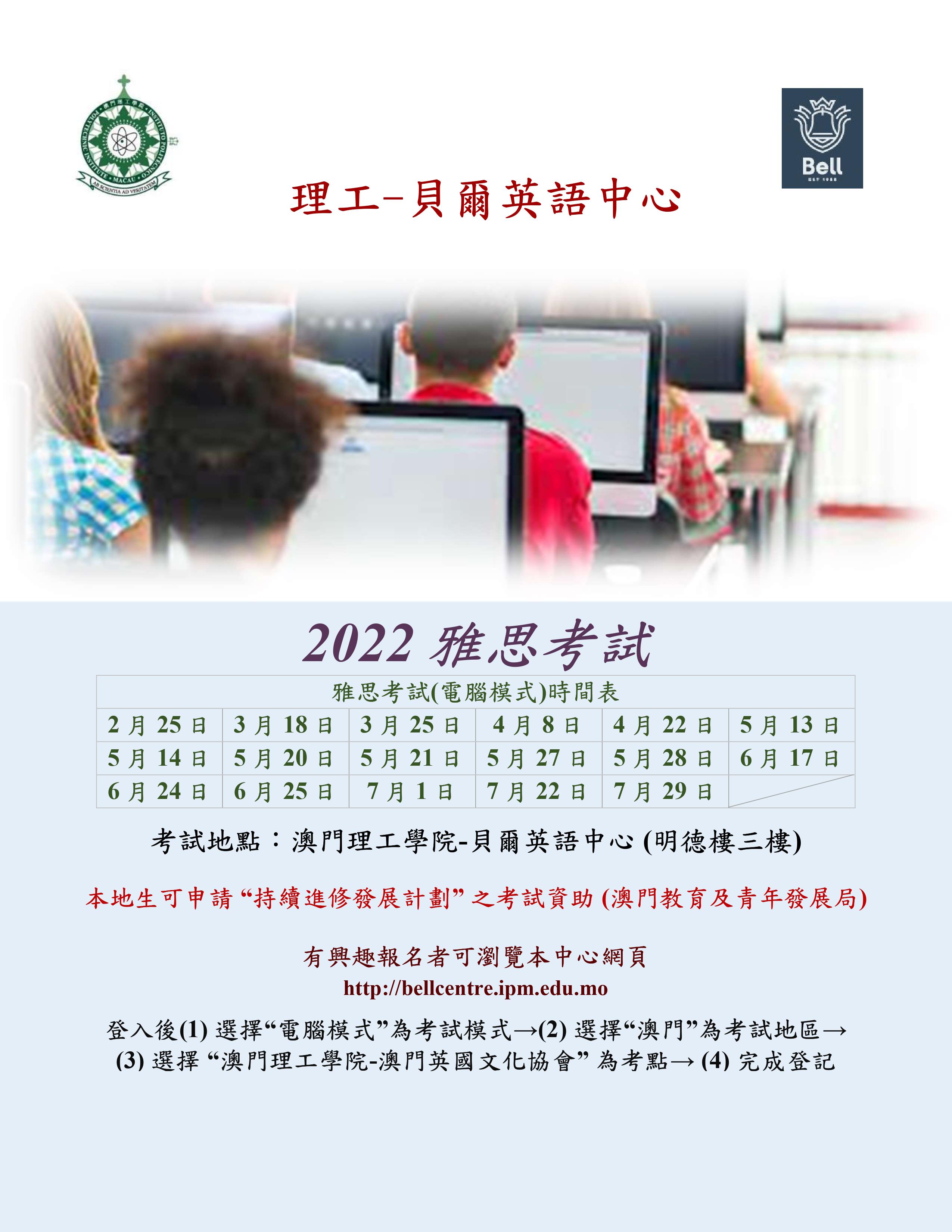 澳門理工學院-貝爾英語中心雅思考試現正接受報名 -