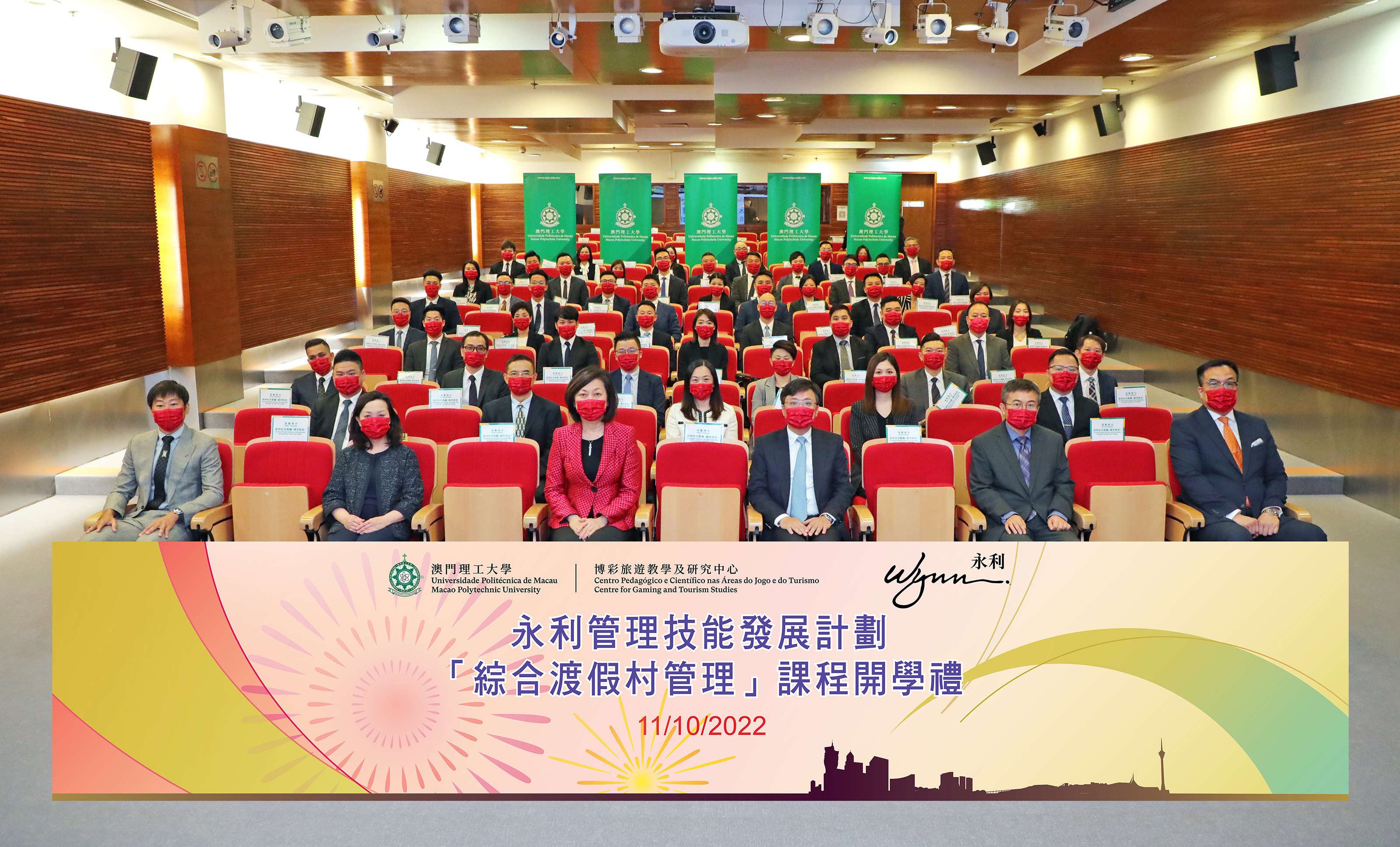 “綜合渡假村管理”課程以管理經營為重點,涵蓋全方位知識領域,包括:區域產業發展、金融政策走向、虛擬實體經濟、數據與安全,以及綜合渡假村管理脈絡等,為高級管理人員提供掌握前沿知識、拓展管理思維、提升應用技能的專業平台。出席開學禮的嘉賓還包括:永利澳門人力資源高級副總裁莫慕賢、人才培育及發展副總裁葉華信、人才培育及發展行政總監區婉媚,以及澳門理工大學博彩旅遊教學及研究中心主任王長斌、副主任蕭宇寧和教授曾忠祿等。