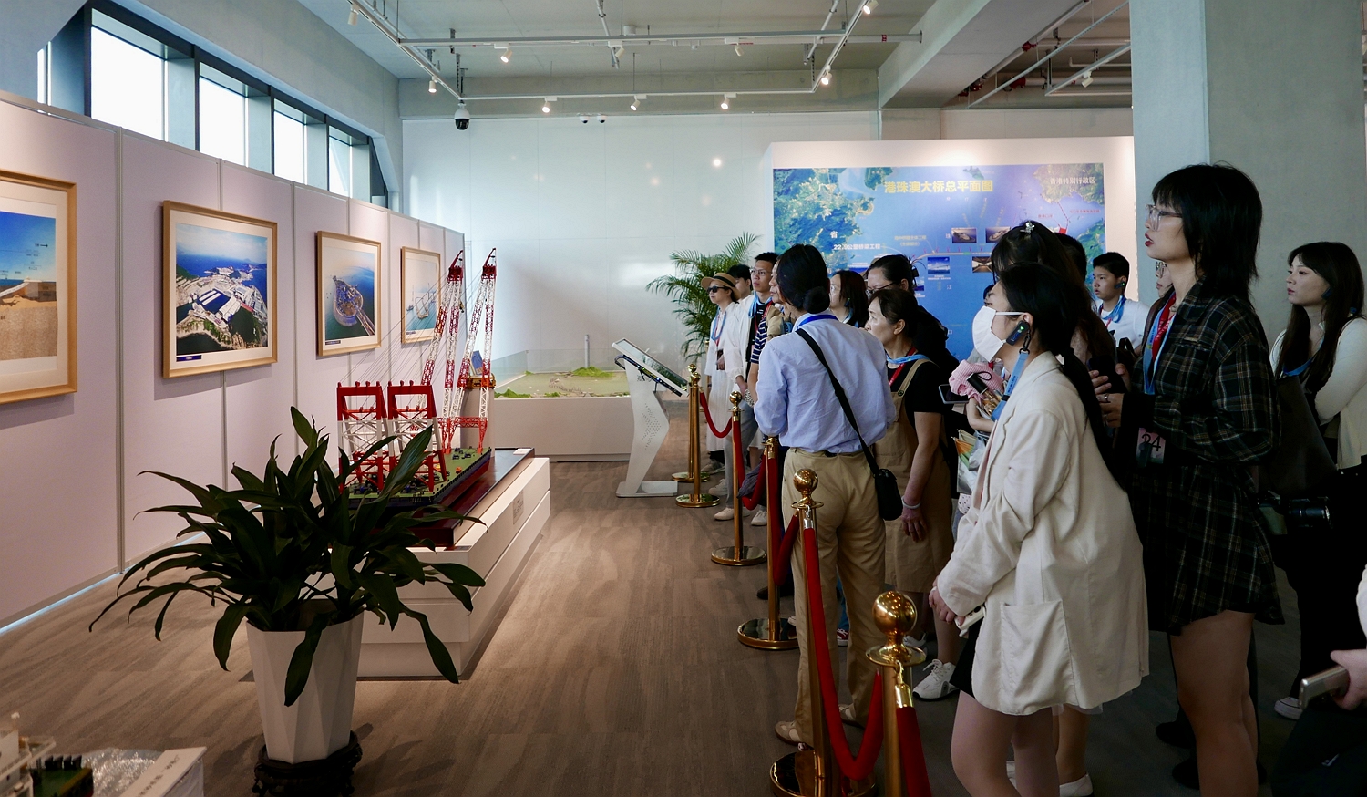 學生在專業講解員的陪同下近距離欣賞“風帆”造型的九洲橋、“海豚”造型的江海橋和“中國結”造型的青州橋三座航道橋,以及白海豚島和海底隧道等,全面領略港珠澳大橋的壯麗景色。在藍海豚島上,學生參觀展廳,認識大橋的建造工藝、施工設備、開創精神和背後的感人故事,及其創下多項“世界之最”的偉大成就。