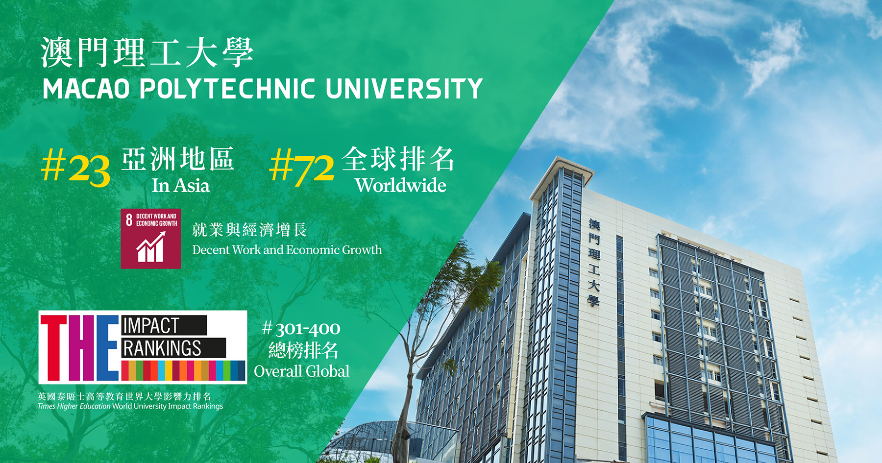 6月12日,“2024年度英國泰晤士高等教育世界大學影響力” (Times Higher Education World University Impact Rankings 2024) 排名在泰國曼谷公佈,澳門理工大學首度躋身世界大學影響力總榜全球排名第301至400名區間,是澳門地區排名最高的高校,同時成功躋身聯合國可持續發展目標“就業與經濟增長”前一百名,躍升至全球排名第72位及亞洲排名第23位,學術影響力受國際認可。