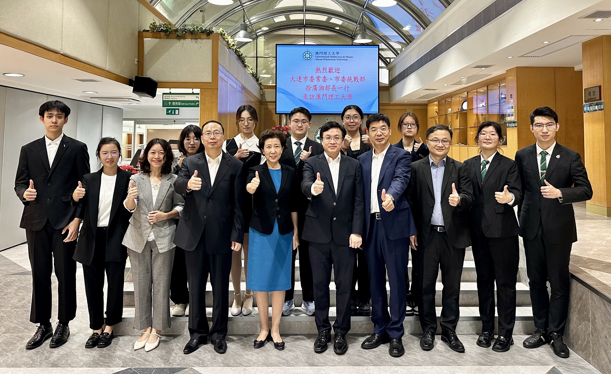 大連市委常委、市委統戰部部長徐廣湘率代表團訪問澳門理工大學,受到校長嚴肇基等的熱情接待。雙方就高等教育、人才培養、科研創新等方面進行交流,氣氛愉快。