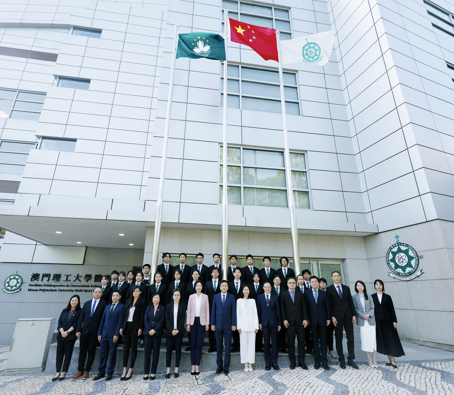 升國旗儀式由澳門理工大學學生國旗儀仗隊執行,儀仗隊以整齊劃一、鏗鏘有力的步伐護送中華人民共和國國旗、澳門特別行政區區旗和澳門理工大學校旗走向升旗台,在雄壯的國歌聲中,五星紅旗冉冉升起,全體師生面向國旗行注目禮,以表達對祖國的崇敬和誠摯祝福。場面莊嚴肅穆。