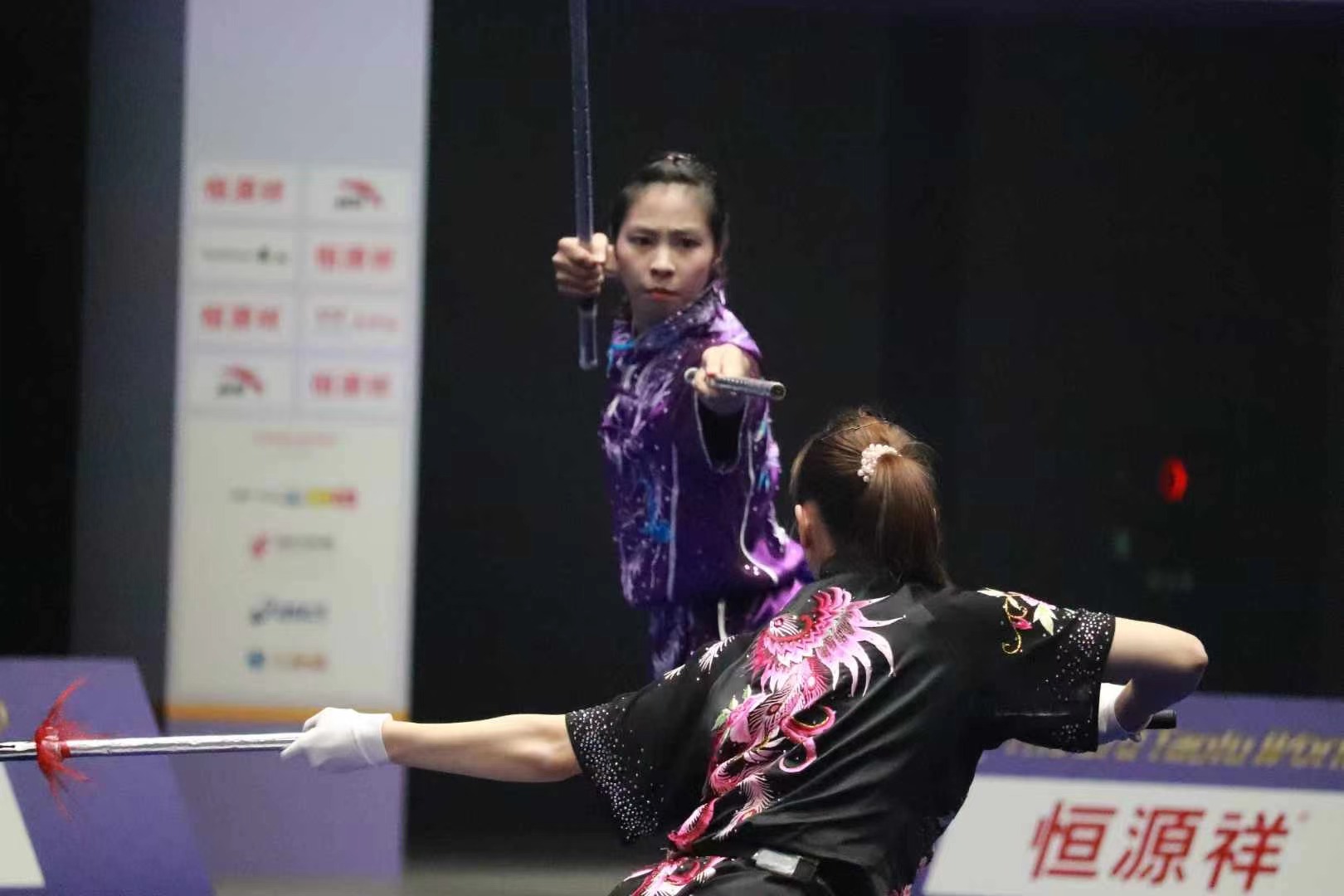 學生王泳欣與學姐蘇楚雯雙劍合璧,二人打出默契,出戰女子對練項目以9.533分成績勇奪金牌。