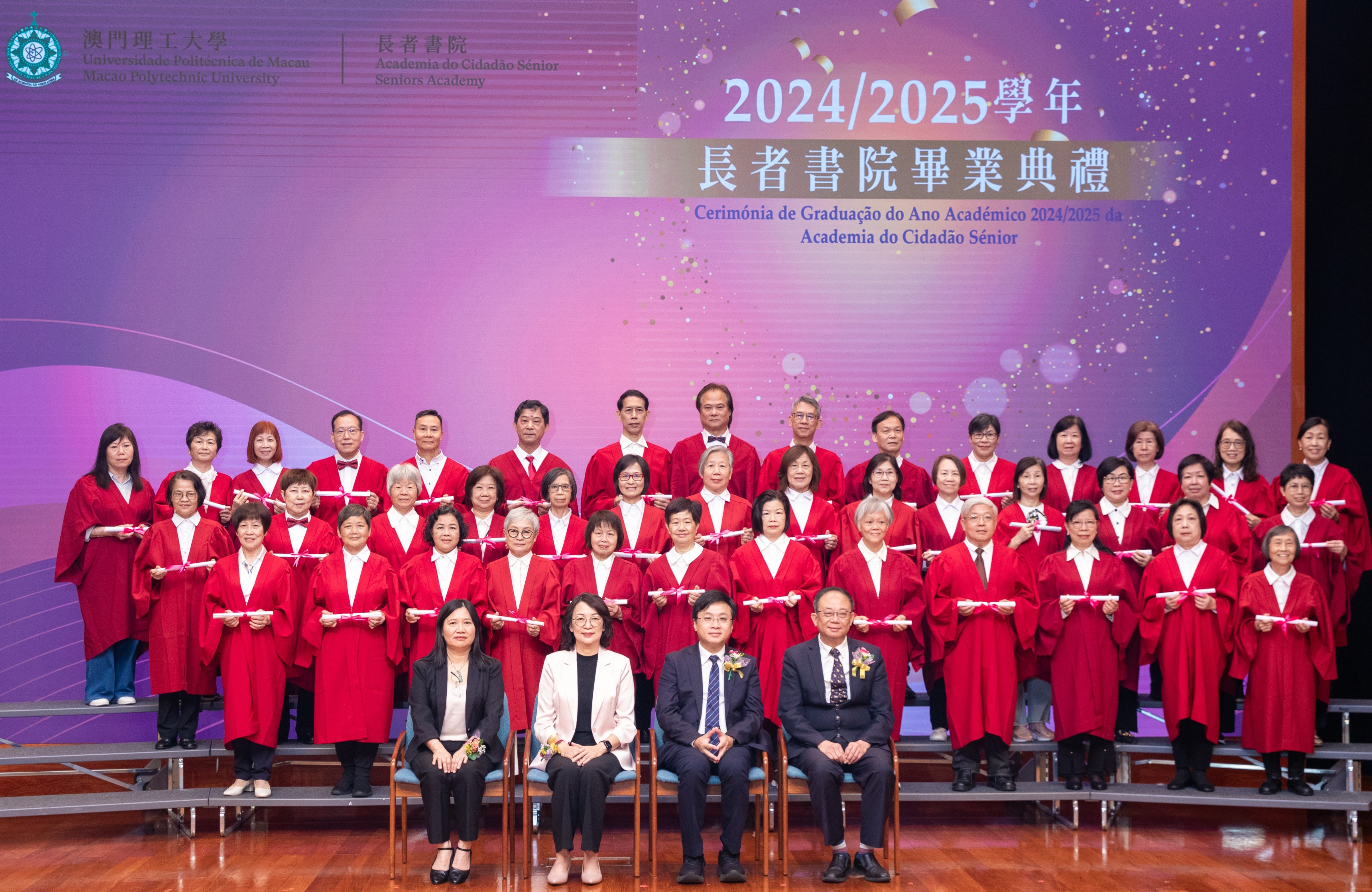 澳門理工大學長者書院舉行2024/2025學年畢業典禮,慶祝212名四年制學員學成畢業,溫馨熱烈。澳理大校長嚴肇表示,配合澳門特區政府社會文化範疇的施政工作,2025年8月開課的新學年,澳理大長者書院四年制及短期課程將增加學額,支持長者持續學習,與社會共同成長。