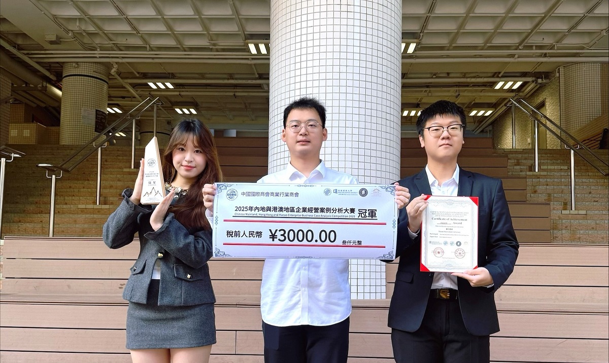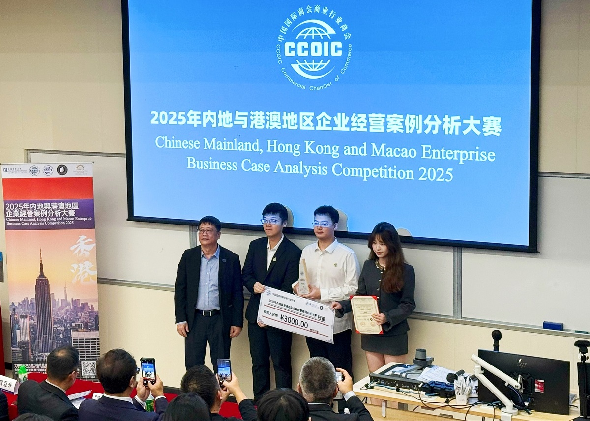 由中國國際貿易促進委員會商業行業委員會、中國國際商會商業行業商會主辦,香港浸會大學與科創教育協辦,大灣區港澳人才協會特別支持的2025內地與港澳地區企業經營案例分析大賽於香港舉行。澳門理工大學管理科學學院的五名學生通過出色的表現及卓越的團隊精神,於競賽中勇奪大賽冠軍與金獎。