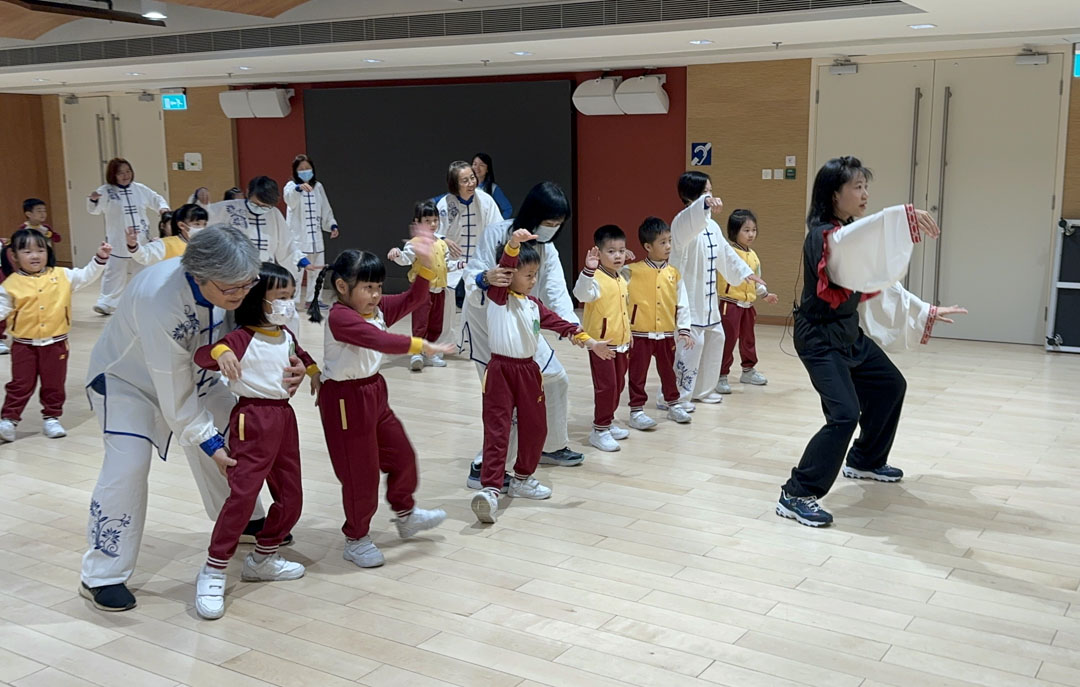 氹仔坊眾學校幼稚園學生到長者書院氹仔校區的”陳式太極拳中班”,觀摩學習認識中國傳統武術。