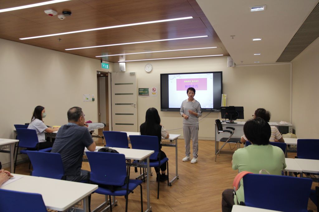 第四屆長者導師培訓課程的學員麥燕紅於長者書院進行教學實踐,舉辦了「基礎護理臨床操作之扶抱技巧」工作坊。